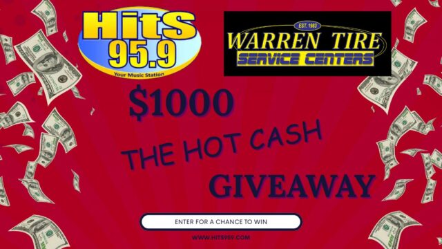 Hits 95.9 and Warren Tire Service Centers are giving you the chance to win $1000 a day with the Hits 95.9 Hot Cash Giveaway! Starting on Monday September 22nd listen every weekday at 8am, 11am, 2pm, and 5pm for the keywords to win and enter them below! Remember for all of your vehicle services needs, Warren Tire Service Centers have 16 area locations!